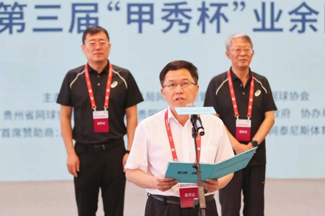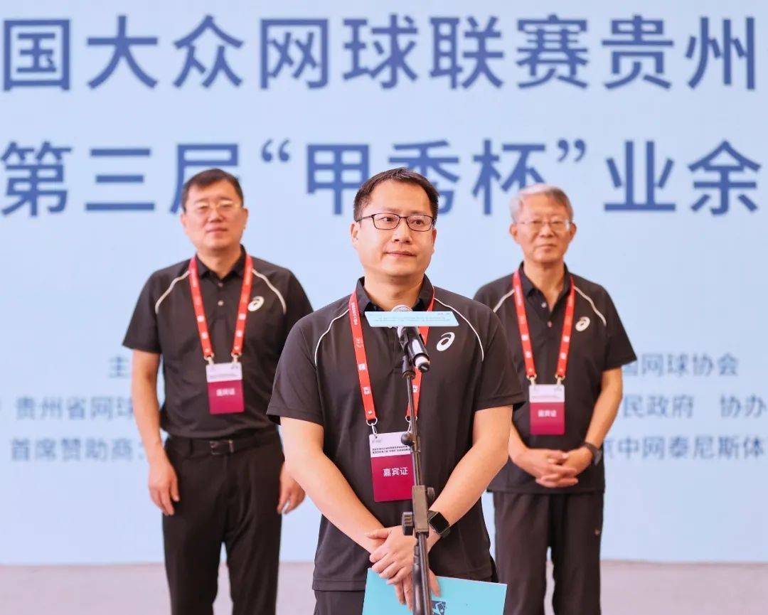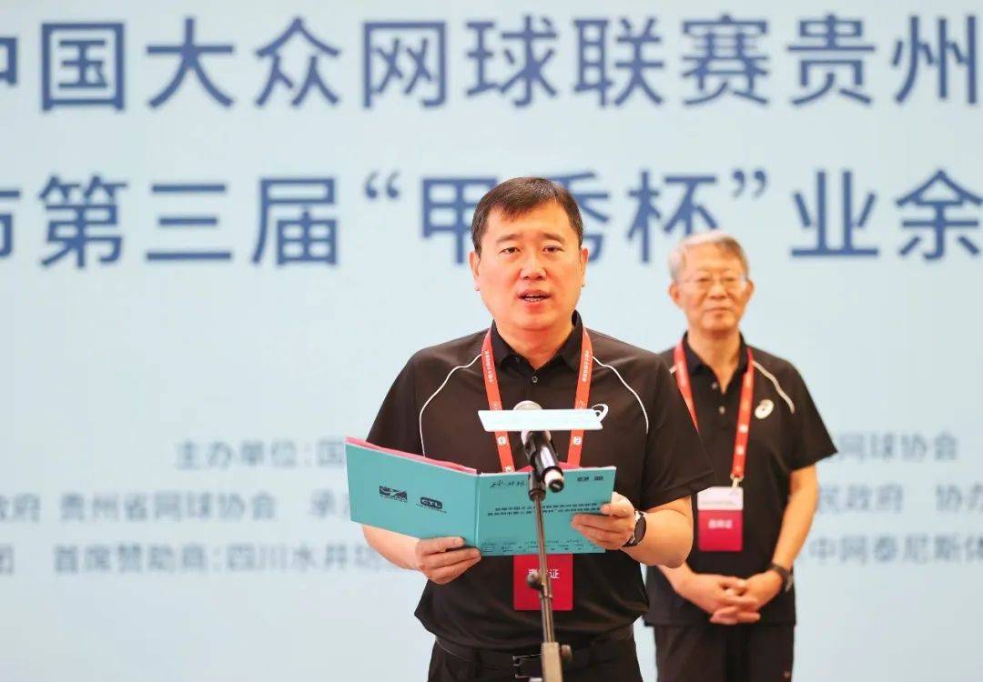 首先,贵阳市人民政府副市长龙丛致欢迎辞。他表示,网球运动在贵阳市有着广泛的群众基础,是贵阳市重点发展的运动项目之一。此次首届中国大众网球联赛省级联赛落地贵阳,是贵阳市打造网球城市名片的重大机遇,我们将秉承以人民为中心的体育发展理念,以打造“爽爽贵阳”IP体育赛事活动为契机,持续推动网球项目全民健身事业高质量发展,以实际行动助力健康中国、健康贵阳的建设。