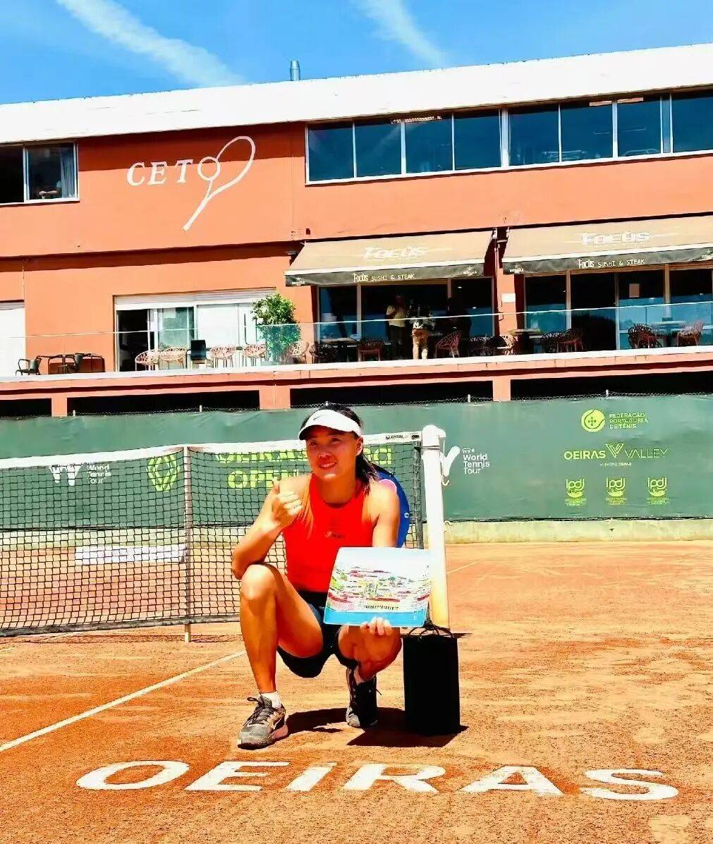 ▲4月27日,在ITF(国际网球联合会)葡萄牙奥埃拉什W100决赛中,袁悦夺得红土首个冠军。