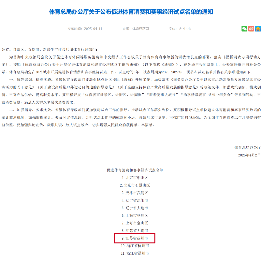 ▲11月10日,扬州13家单位获评全国群众体育先进单位,6人获评全国群众体育先进个人。