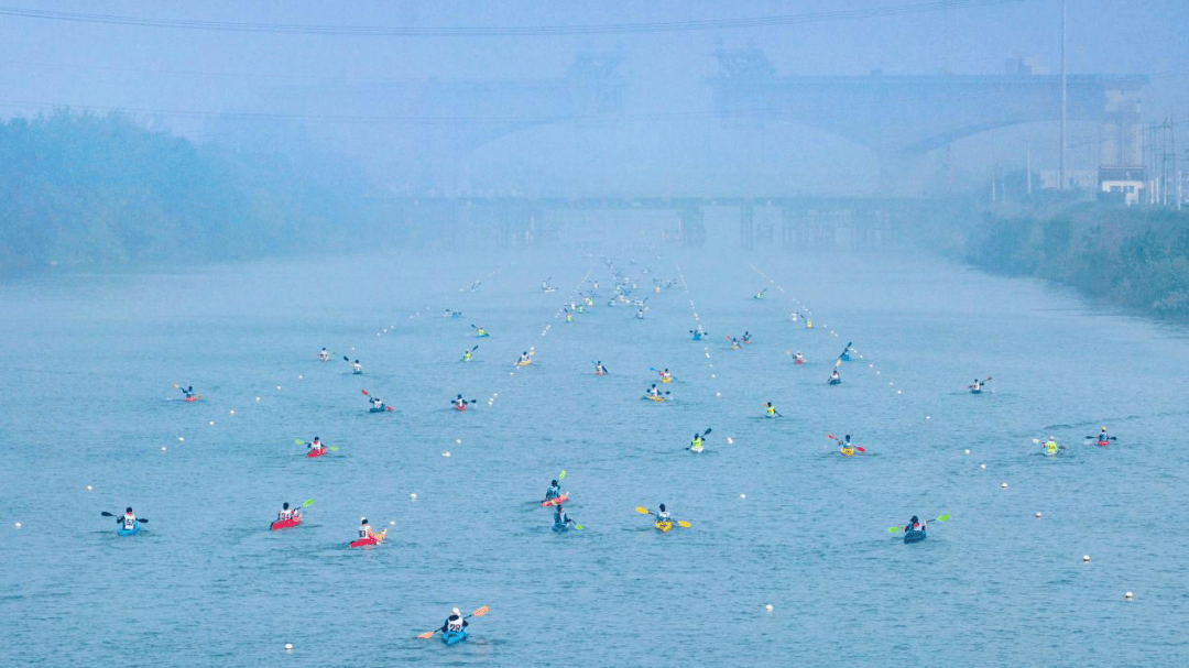 ▲11月1日,中国国际皮划艇马拉松挑战赛暨2025年“京杭大运河”皮划艇马拉松系列赛总决赛(扬州站)在生态科技新城七河八岛水域举行。