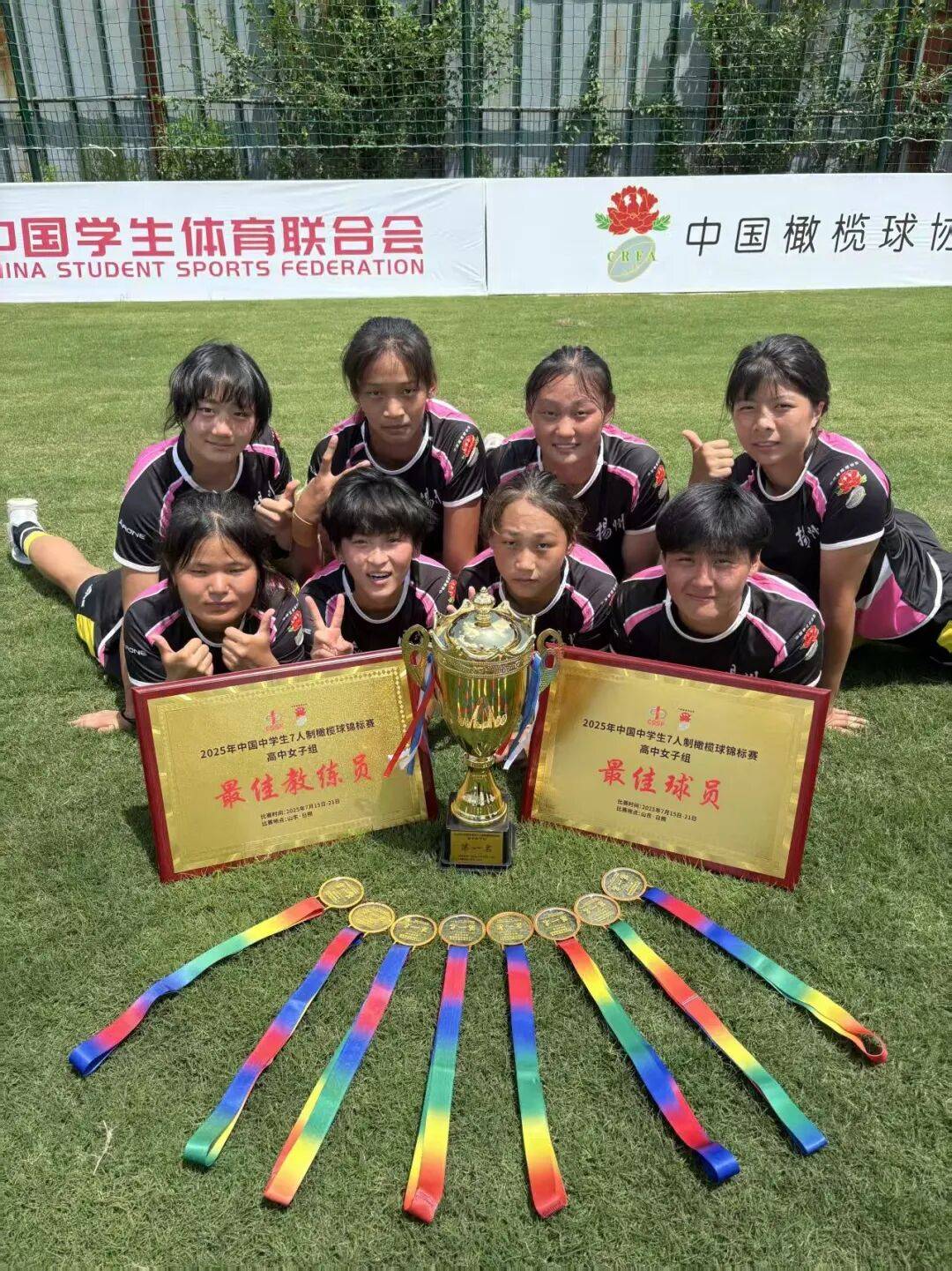 ▲7月20日,扬州新东方中学代表队夺得2025年中国中学生7人制橄榄球锦标赛高中女子组冠军。