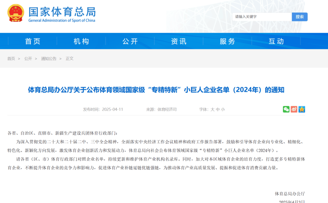 ▲4月11日,江苏稻源科技集团有限公司获评2024年体育领域国家级“专精特新”小巨人企业。