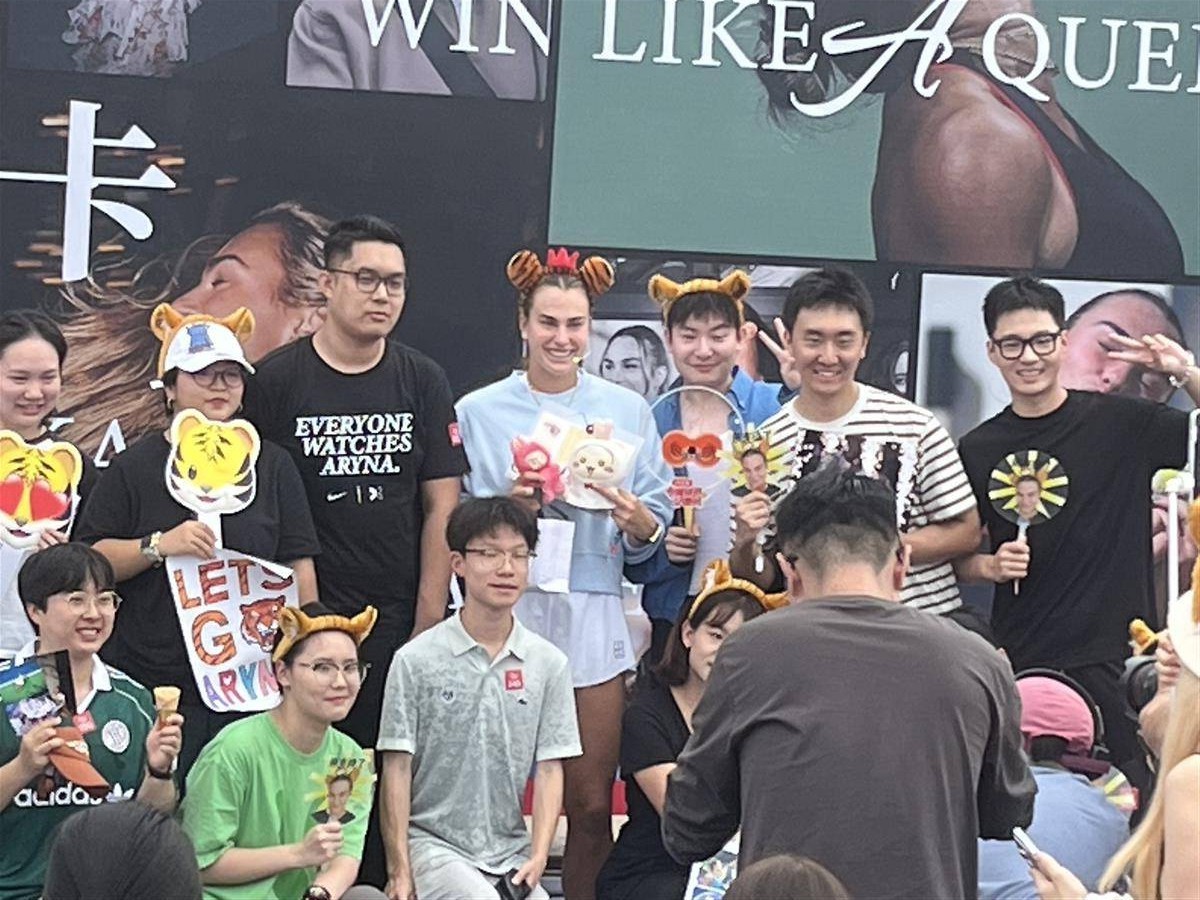 萨巴伦卡在4日的球迷见面会上和粉丝们玩得不亦乐乎。(湖北日报全媒记者 郭晓明 摄)