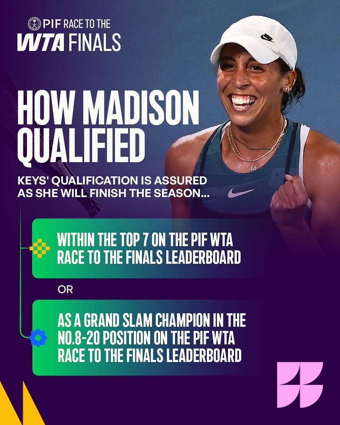 值得注意的是,在冠军积分榜上,佩古拉以4653分位列第五,凯斯则以4449分紧随其后,排名第六。然而,为何是排名更低的凯斯率先获得了总决赛资格呢?WTA给出的官方解释是,凯斯已经确定能够锁定PIF迈向总决赛积分榜前七的位置,或者凭借今年大满贯冠军的身份跻身前20名。根据年终总决赛的规定,新科大满贯冠军只要排名进入前20,便可直接获得参赛资格。