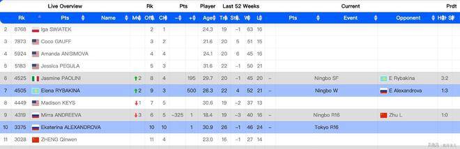 此外,宁波站的胜利为莱巴金娜的年终积分奠定了关键基础。如果她在接下来的东京站能够打进四强,她将锁定年终总决赛的最后一个名额,成功超越佩古拉和安德列娃等竞争对手。