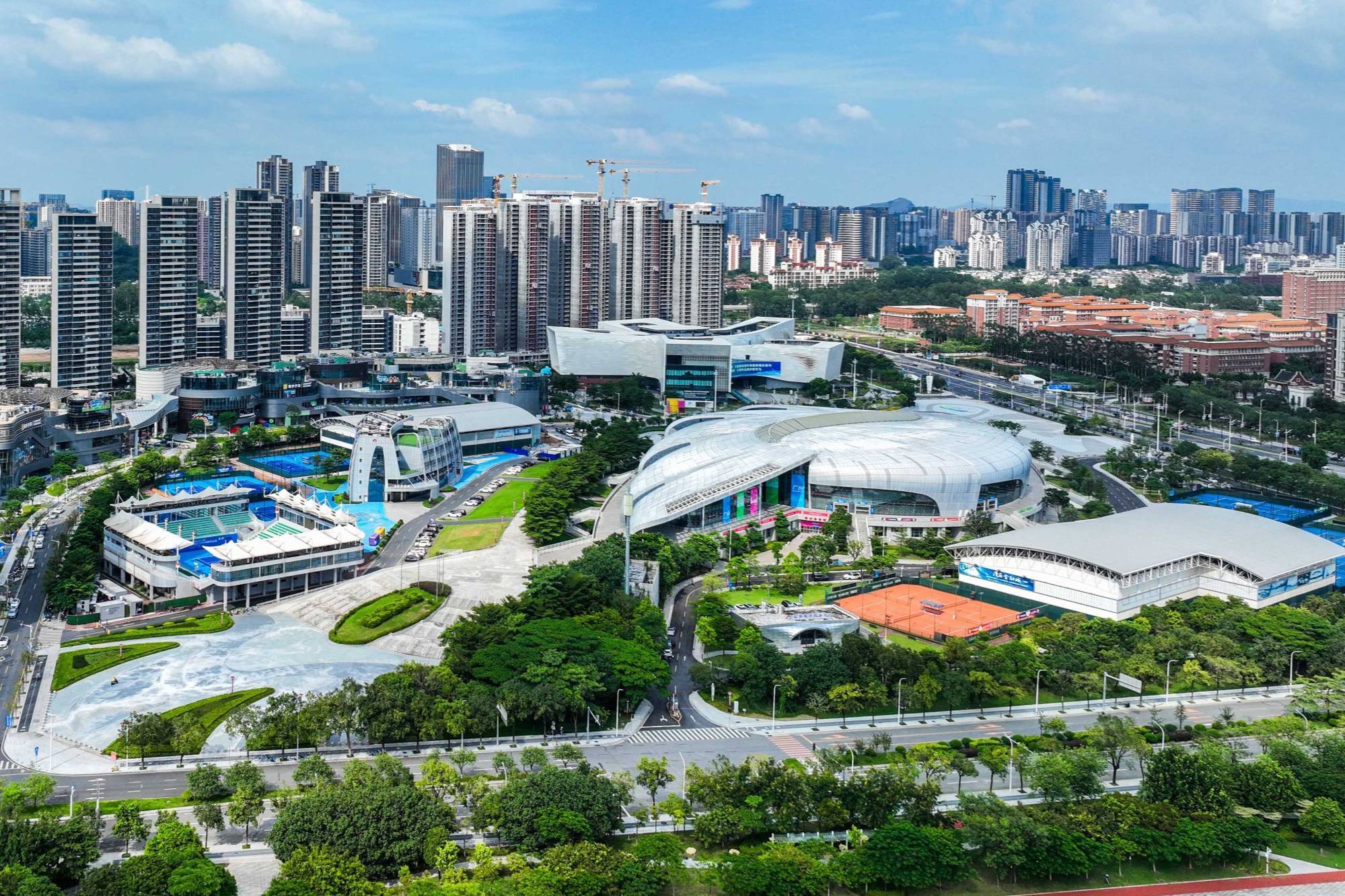 在这两项赛事举办地,海螺造型的南沙体育馆与海星状的南沙区少年宫遥相呼应,周边星罗棋布的是南沙国际网球中心的30余片专业网球场——高空俯瞰,蓝色硬地、红色红土、绿色草地交相辉映,衬以葱郁林木,宛若一片生机盎然的“海上体育绿洲”。