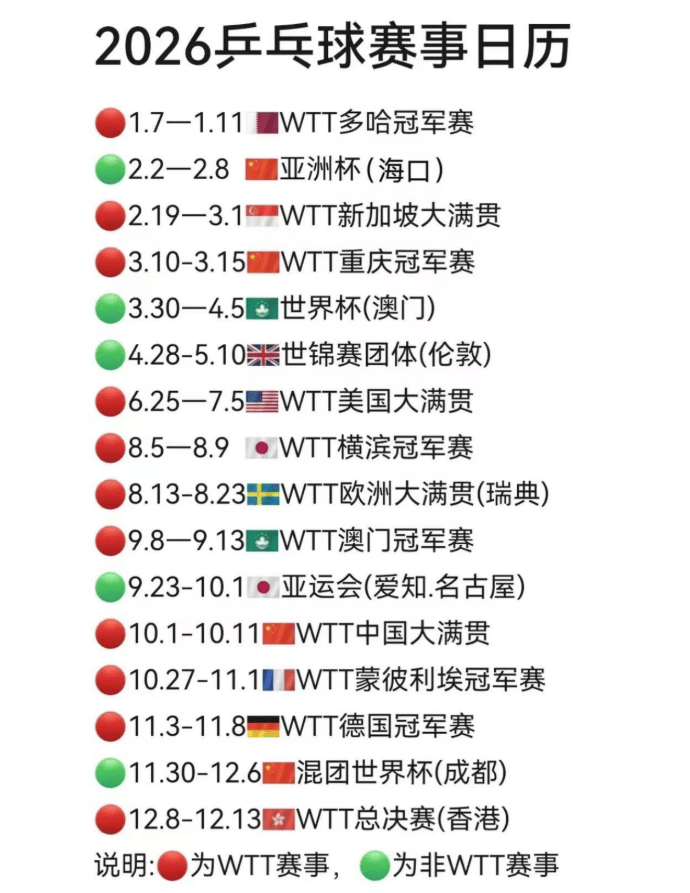 更令人担忧的是,接下来的2026年,国际乒联的赛程安排更是有增无减,其中光是WTT支线场,再加上四站大满贯、六站冠军赛,还有扩军到史上规模最大的乒乓球世锦赛团体赛……如果再算上国内的乒超、全国锦标赛等赛事,对于国乒主力来说基本是全年无休。
