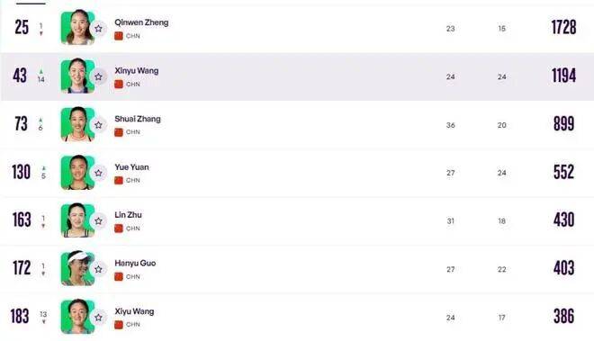 令人遗憾的是中国一姐郑钦文的排名下滑。由于右肘手术恢复未达预期,她已宣布退出本届澳网,本期排名再跌1位至第25名。去年7月手术后,郑钦文仅短暂复出便再度伤退,此次缺席澳网不仅将扣除去年获得的70个积分,后续中东WTA1000赛事还可能失去种子资格,面临提前遭遇顶尖选手的严峻挑战。此外,袁悦排名升至第125位,朱琳、王曦雨等选手排名略有下滑,中国军团仍需在新赛季持续突围。