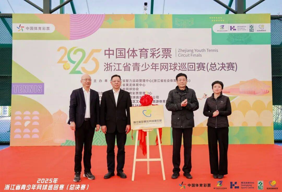 随后,中国网球协会副主席、浙江省网球协会会长郭剑彪,浙江省体育彩票管理中心党总支书记、主任徐仁军,浙江省黄龙体育中心党委专职副书记陈湜爽,浙江黄龙网球俱乐部有限公司董事长毛昭平共同为“浙江体彩黄龙网球俱乐部”揭牌。俱乐部的正式落地,不仅为省队人才梯队建设提供了坚实的硬件保障,更标志着浙江网球青训体系迈入新的发展阶段。