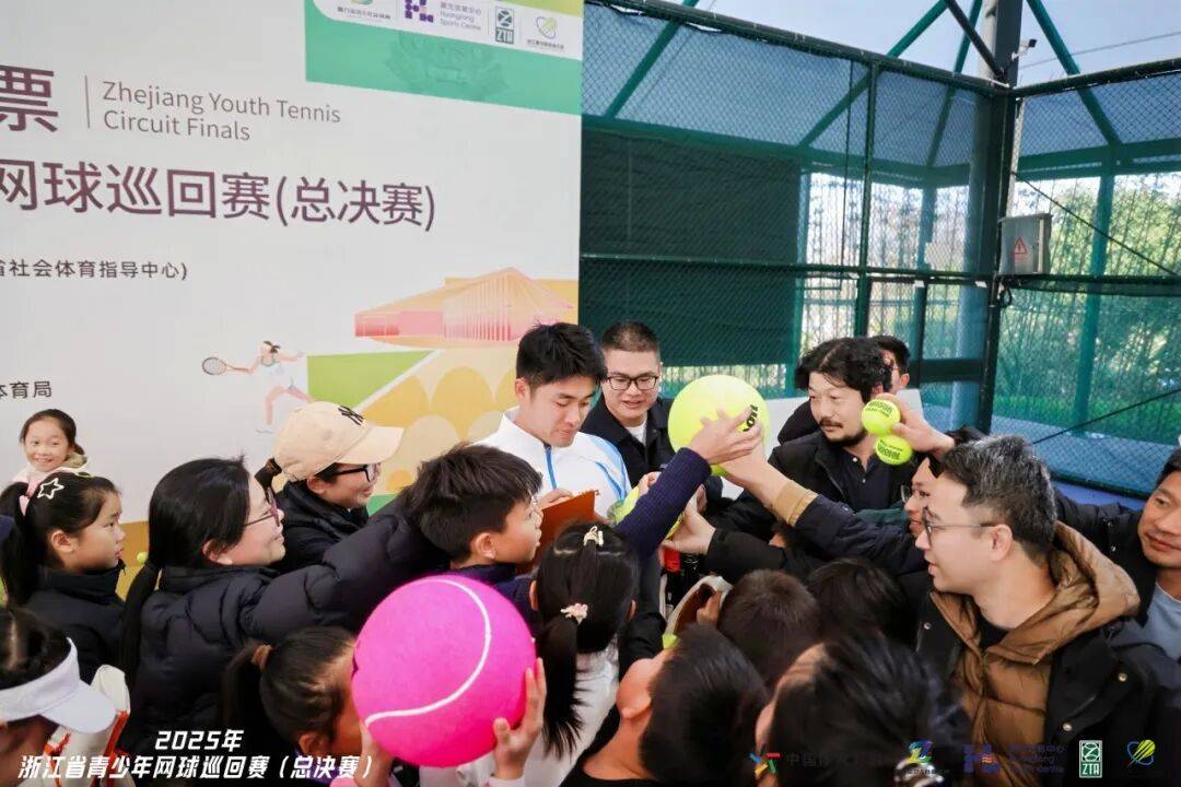 随后的开球仪式上,礼花绽放,标志着2025中国体育彩票浙江省青少年网球巡回赛总决赛正式启动。吴易昺和省队运动员们还为小球迷们进行了签名互动,为开幕式画上圆满句号。